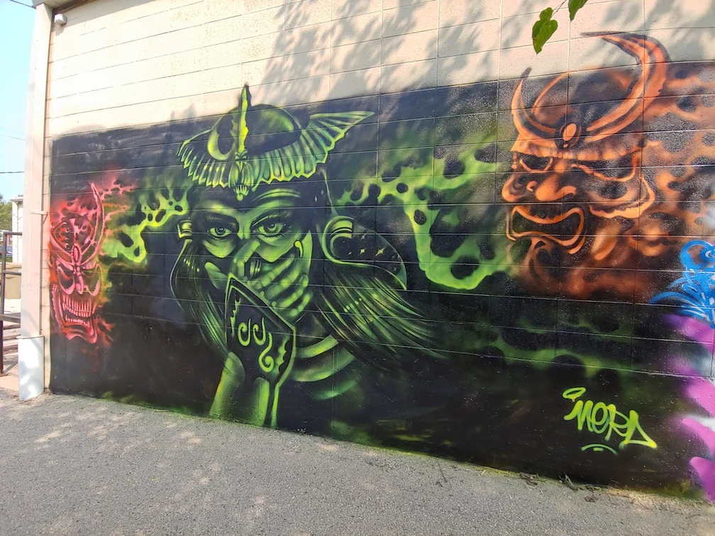 A highlight for me was turning around to see everyone working with the same medium, but all having very different styles of street art and graffiti art. If you think you know graffiti, take a walk along the backside of Momentum Art Tech Madison (the coordinator of the event)- there you'll find about 20 different interpretations of letters with images sprinkled in. But get there fast- the paintings will only be up until late September(2018)! Along Monona Drive, you can see walls showcasing larger pieces, ending at Handel Automotive where my work is nestled in an alleyway with 7 others. Most of these paintings will stay until mid-October(2018). There is something about being outside, painting and sharing your passion with those who might not understand the depth of what can come out of a can. Hoping this event was the first of many, Madison. And thanks to Ironlak spray paint for sponsoring!