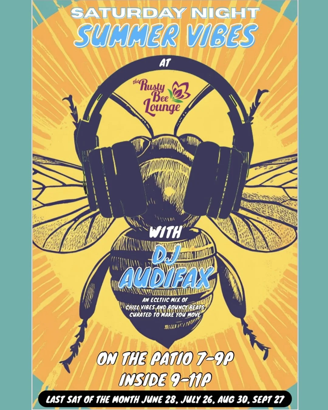 Join me this summer for some fun beats in the sun! I’ll be DJing the Rusty Bee Lounge the last Saturday of the month June through September.