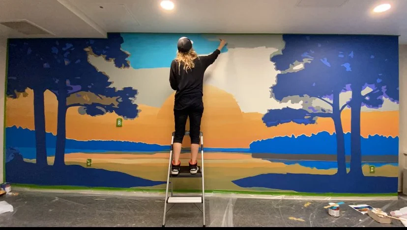 The initial designs are always fun to discover, and I was so happy that they chose the one they did. There was a second concept that would have also worked beautifully, and I’m hoping to paint it for them in the future. I had a wonderful time working with everyone here. The staff really made me feel welcomed and at home for my time creating this mural for them.